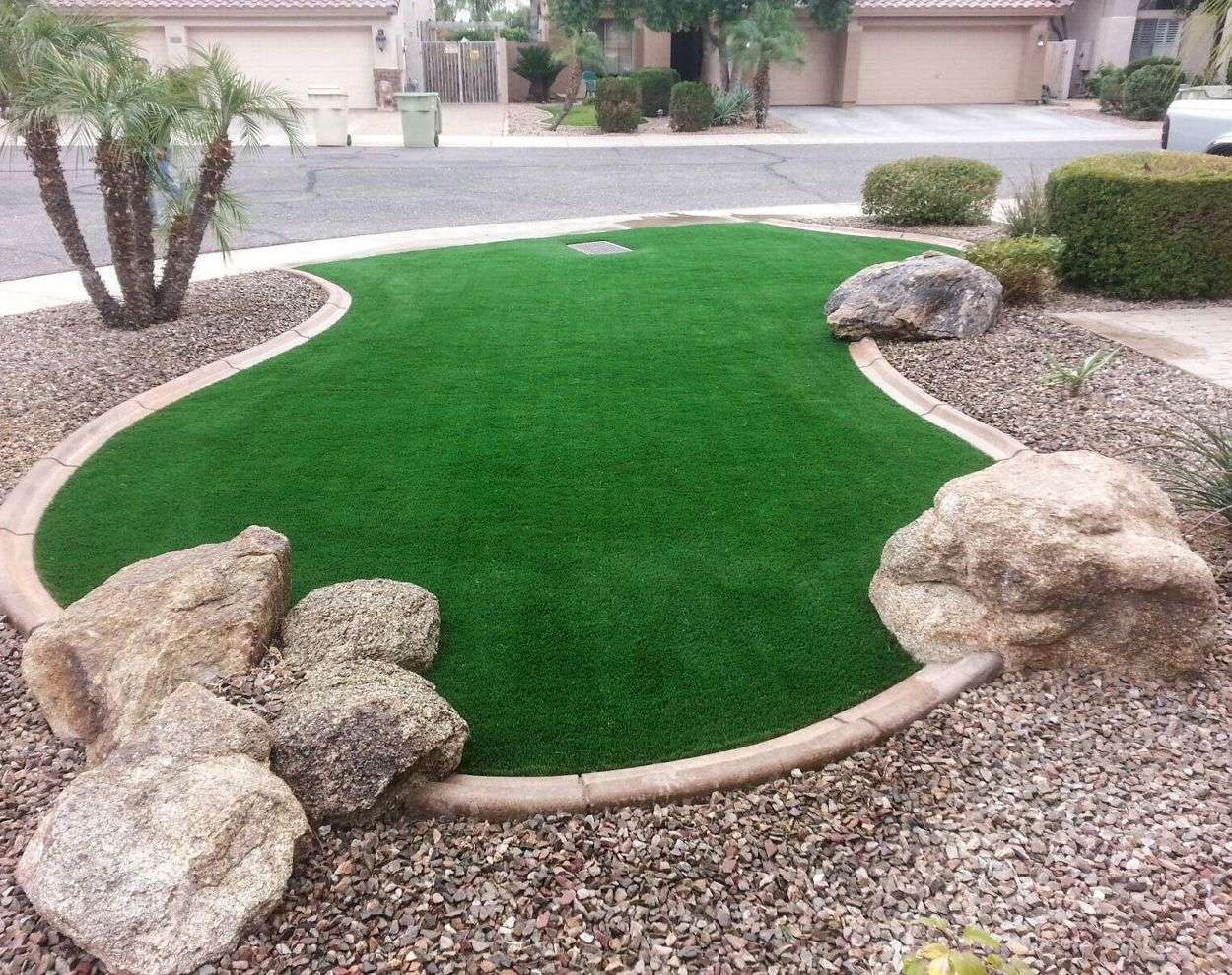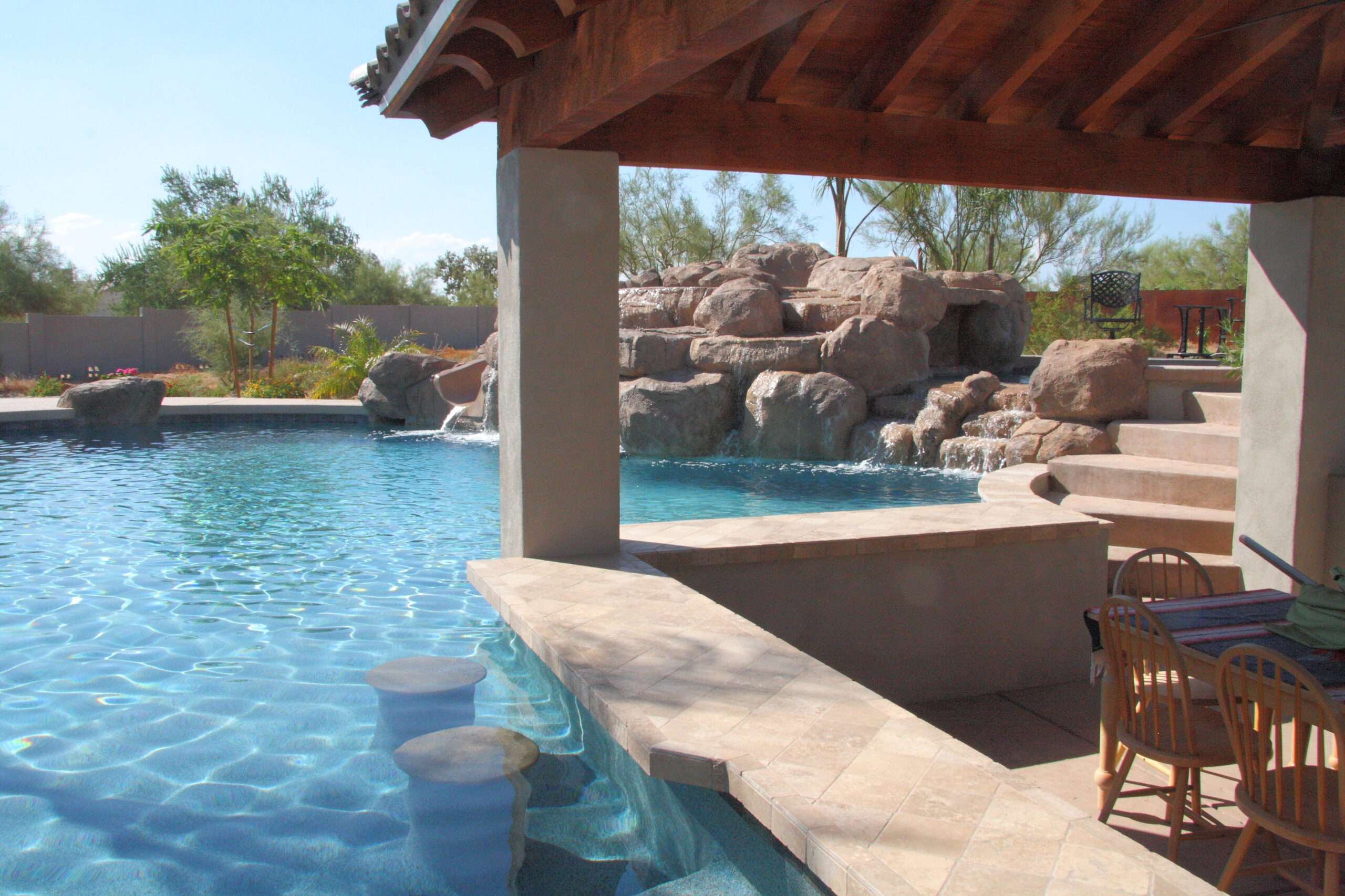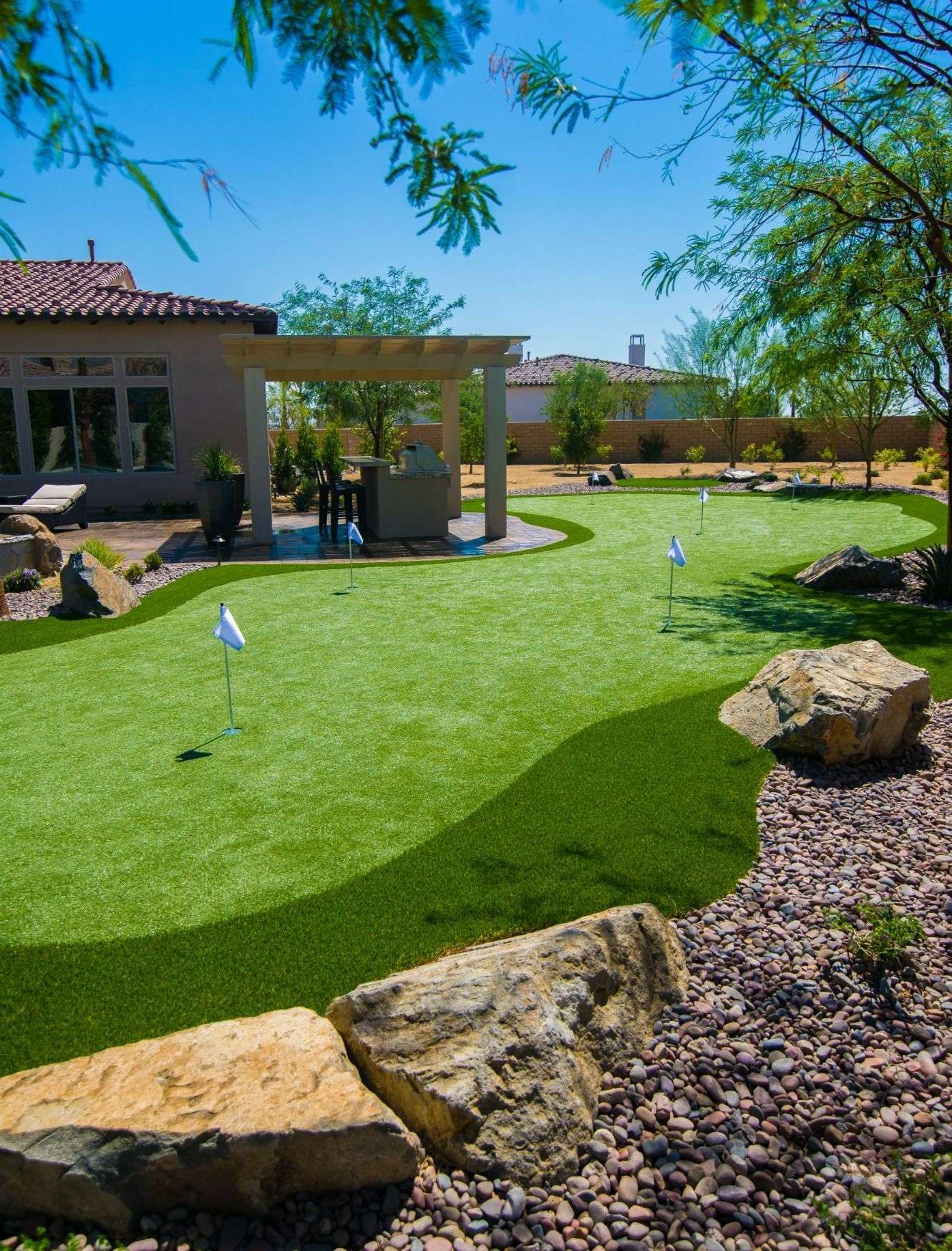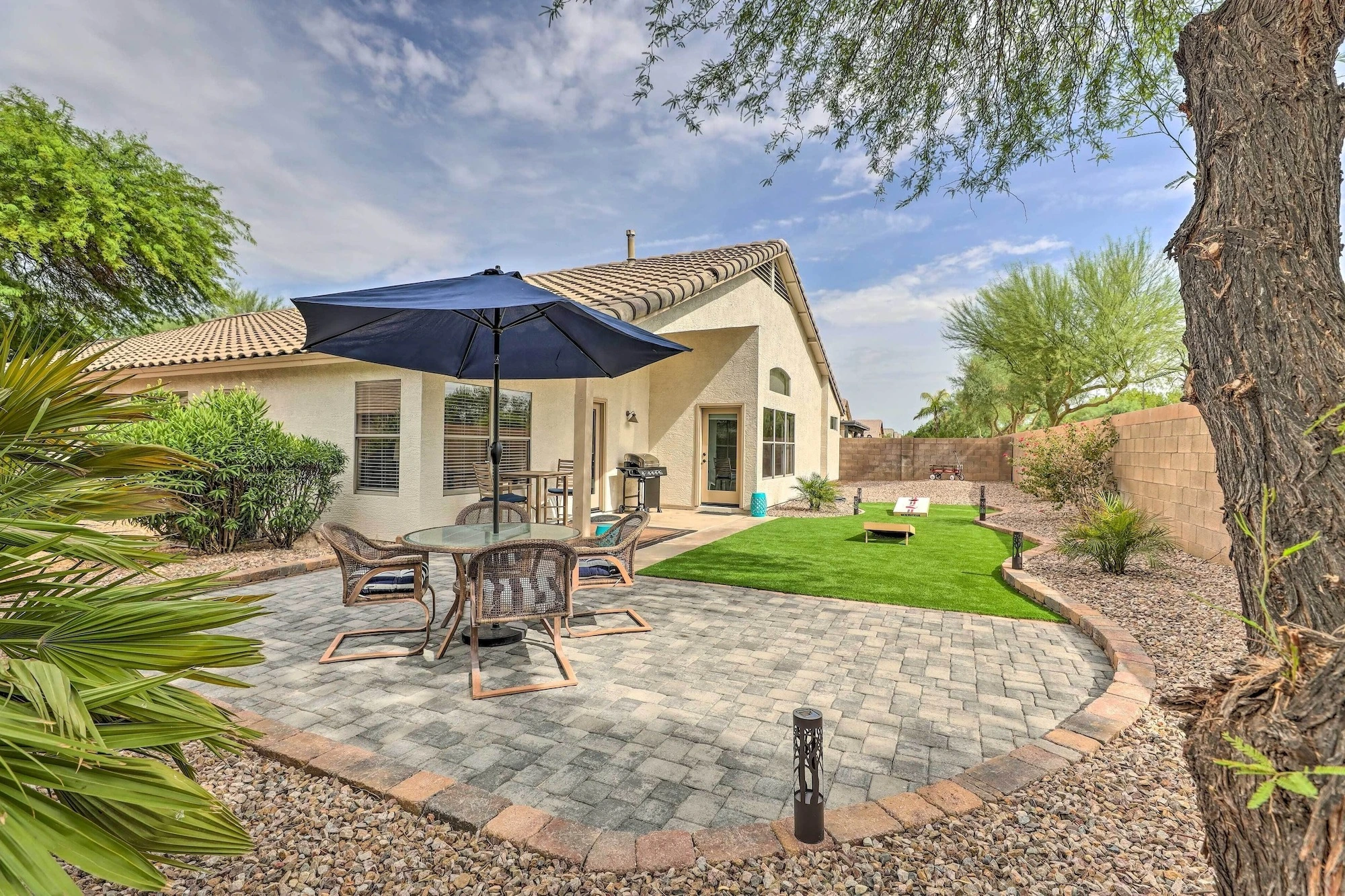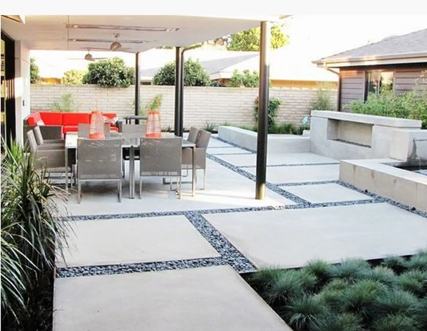 Room for seating and a grill, smooth edges near turf and planters, results that last in the Phoenix sun.